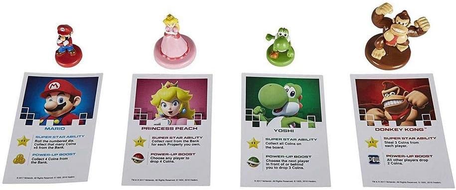 En lugar de tokens Monopoly estándar, el juego presenta personajes de Super Mario, cada uno con sus propios poderes especiales dentro del juego.