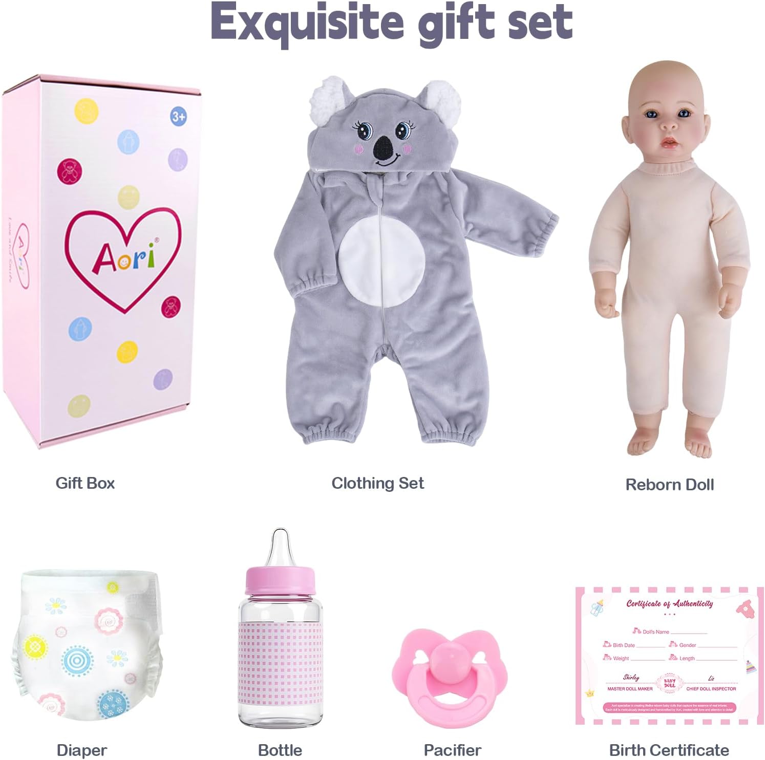 • Experimenta la magia Nuestras muñecas bebé Aori de 17 pulgadas son exquisitamente realistas, capturando los encantos irresistibles de una bebé real con rubor pintado a mano, pestañas y labios de color rosa.