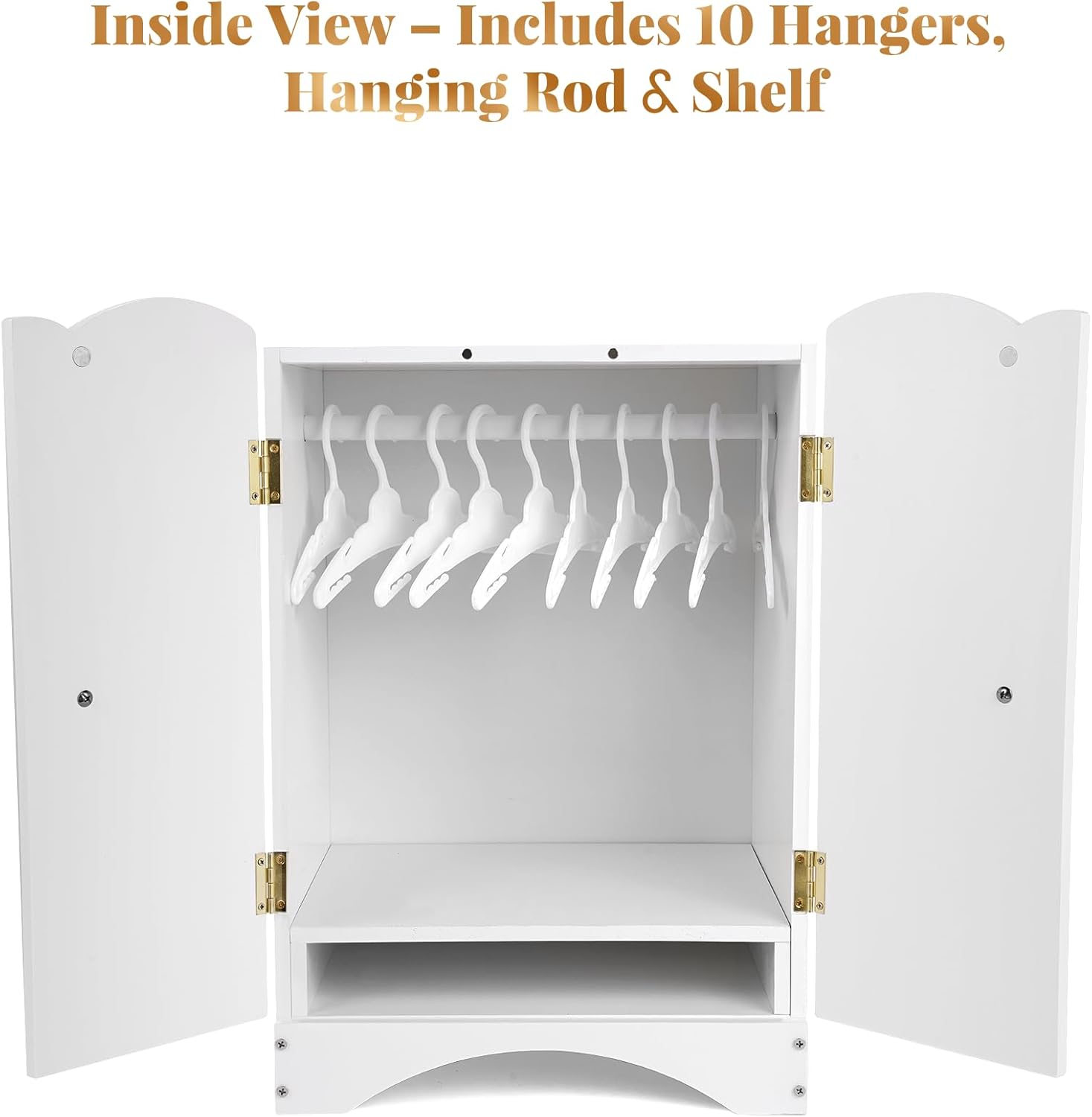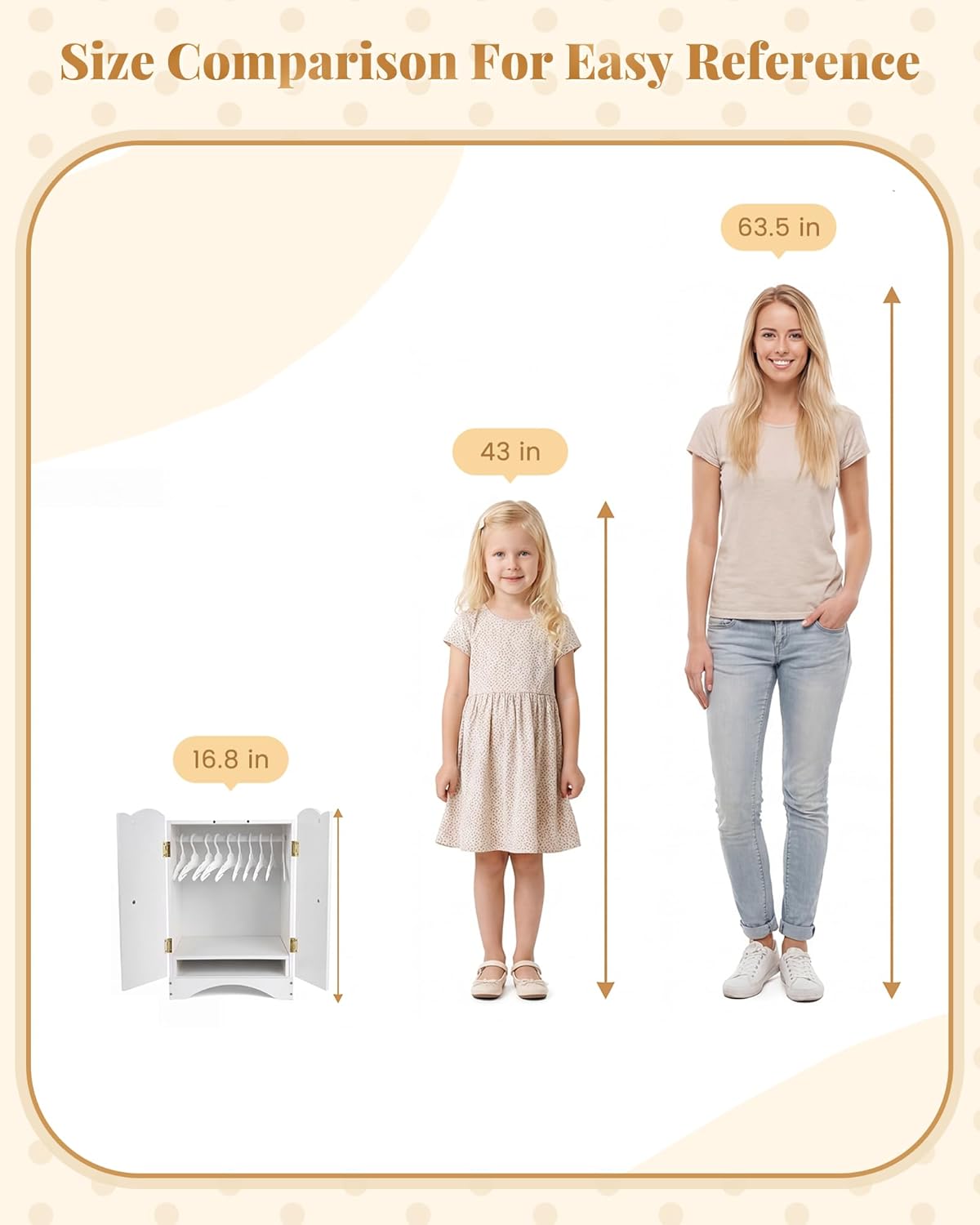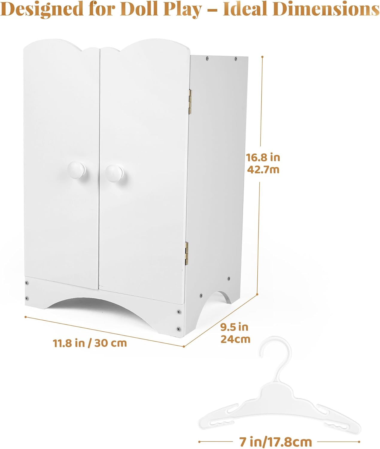• Ideal Dimensions for 12-16" Dolls: With a height of 22 in, the doll closet perfectly accommodates most 12-16" baby doll clothes.