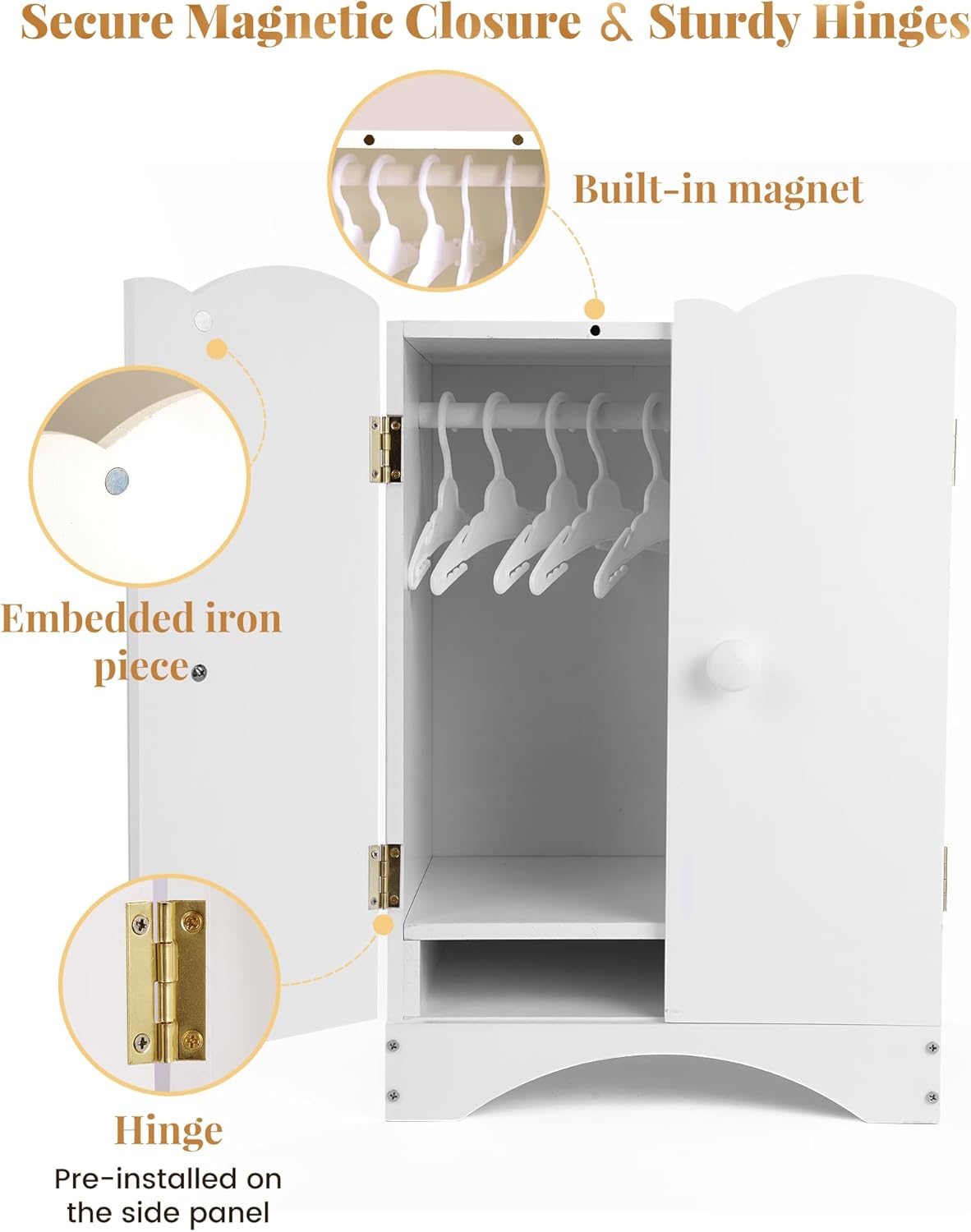• Encourages Imaginative Role Play: Designed to foster creativity, this doll wardrobe is perfect for interactive doll play.