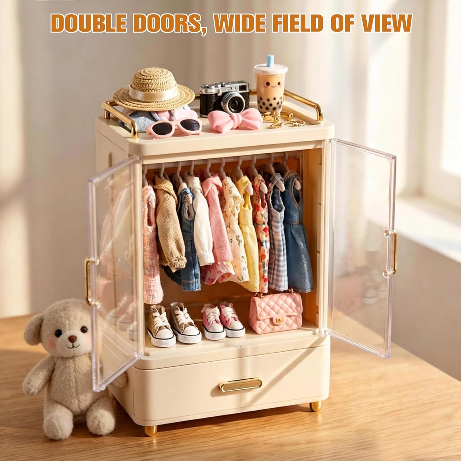 Armario plegable para muñecas con soporte compatible con Labubu, 10...