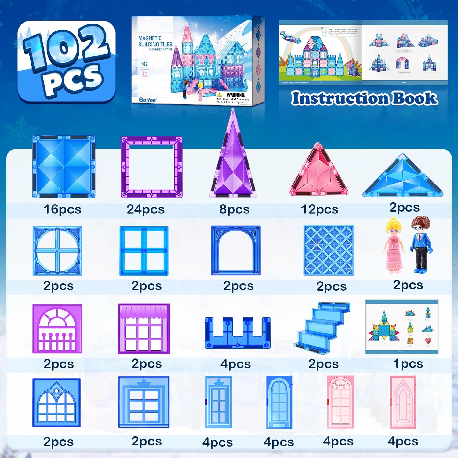 El juego de juguetes para niños tiene piezas duraderas cuidadosamente seleccionadas para que tu princesa pueda construir su castillo de invierno y su reino