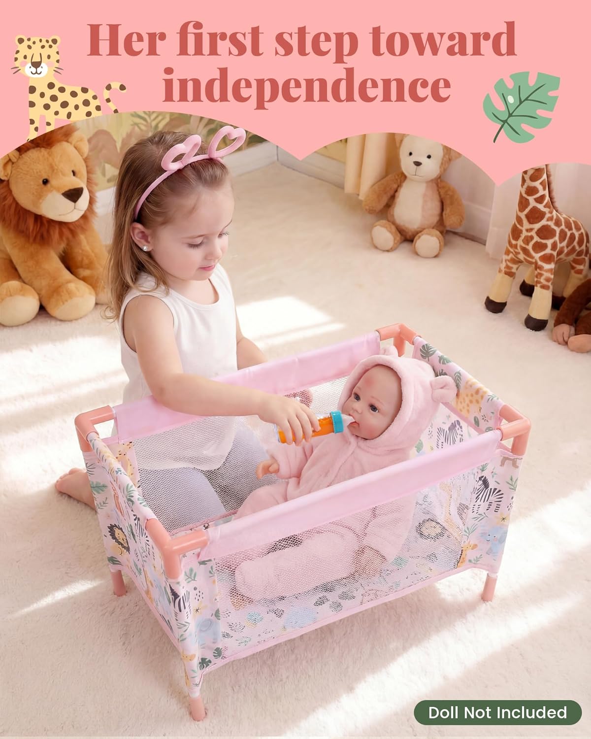 Encourages independence, sharing, cooperation, and caring skills, making it a thoughtful choice for all little caregivers and doll lovers who enjoy baby doll beds, doll cribs, and reborn baby doll accessories