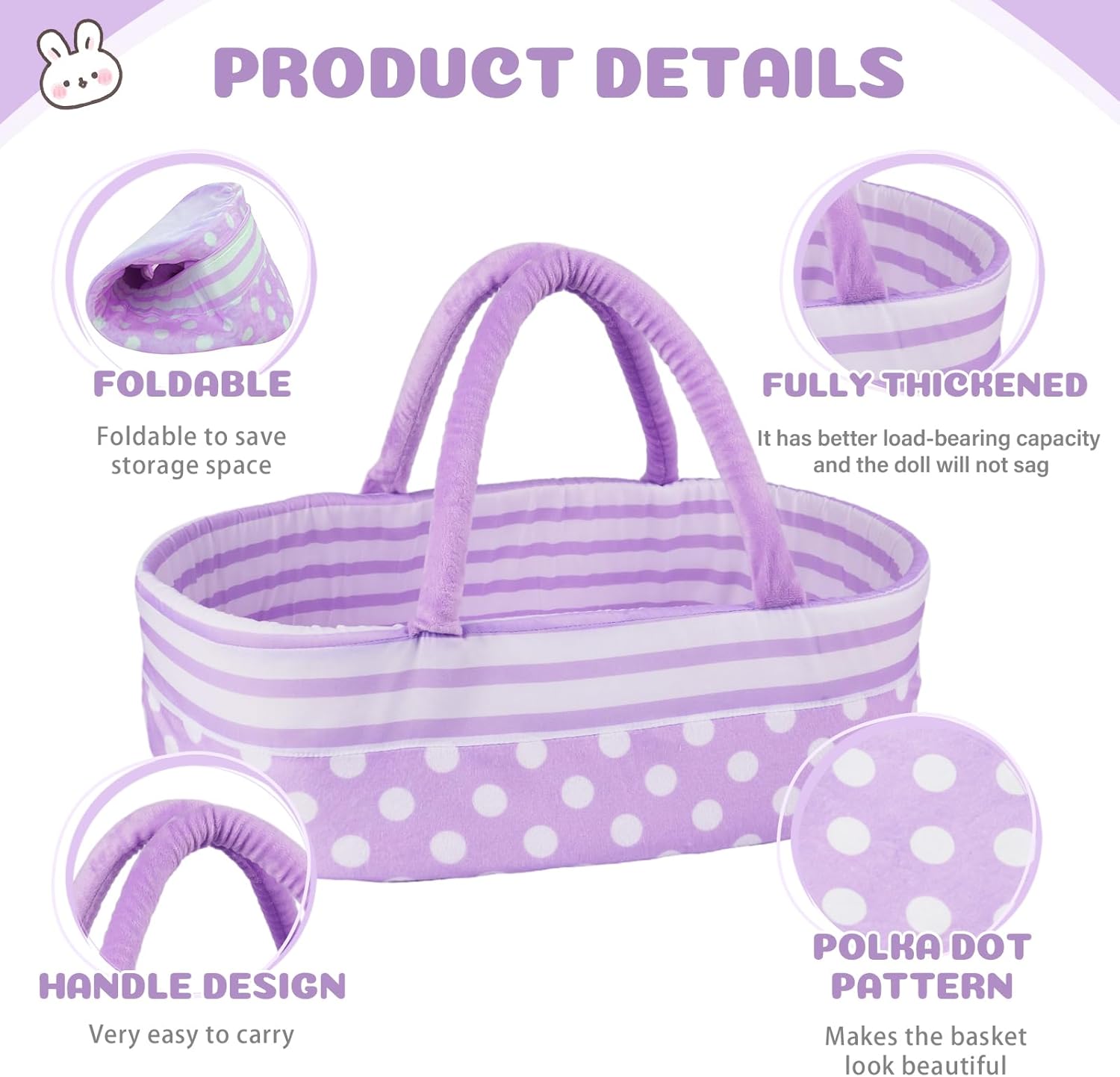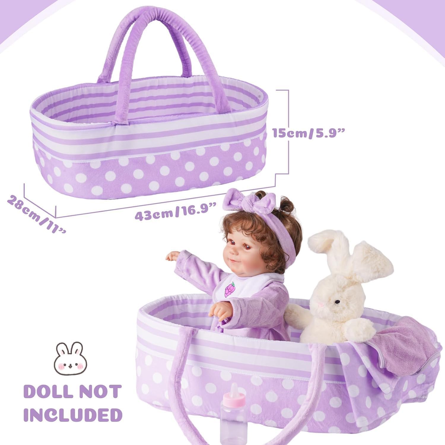 • Moisés para muñecas: el moisés de muñeca de bebé con diseño de puntos coloridos que es fácil de transportar, duradero y tiene un gran espacio, que puede contener muñecas de 17 a 22 pulgadas, ropa de muñeca y accesorios para muñecas, por lo que es fácil para los niños jugar en todas partes