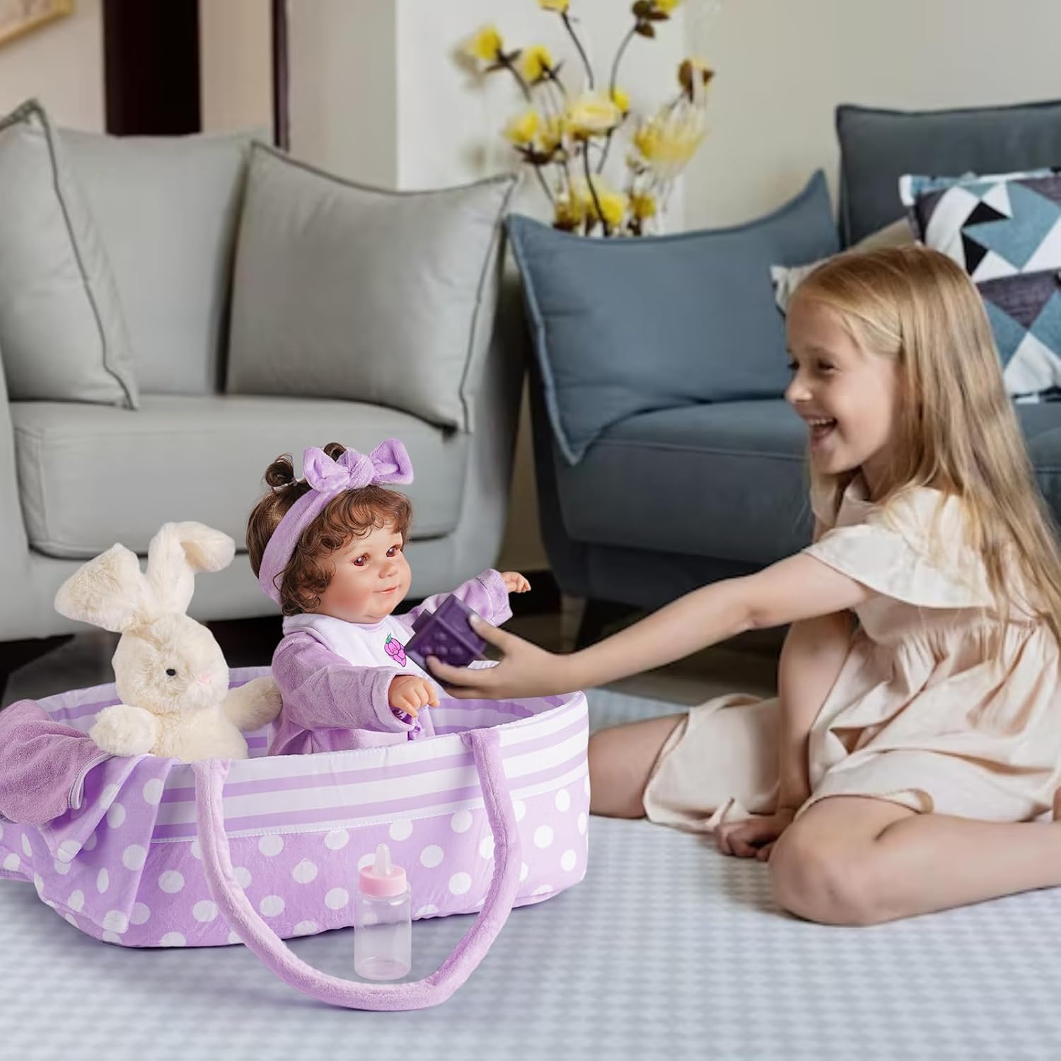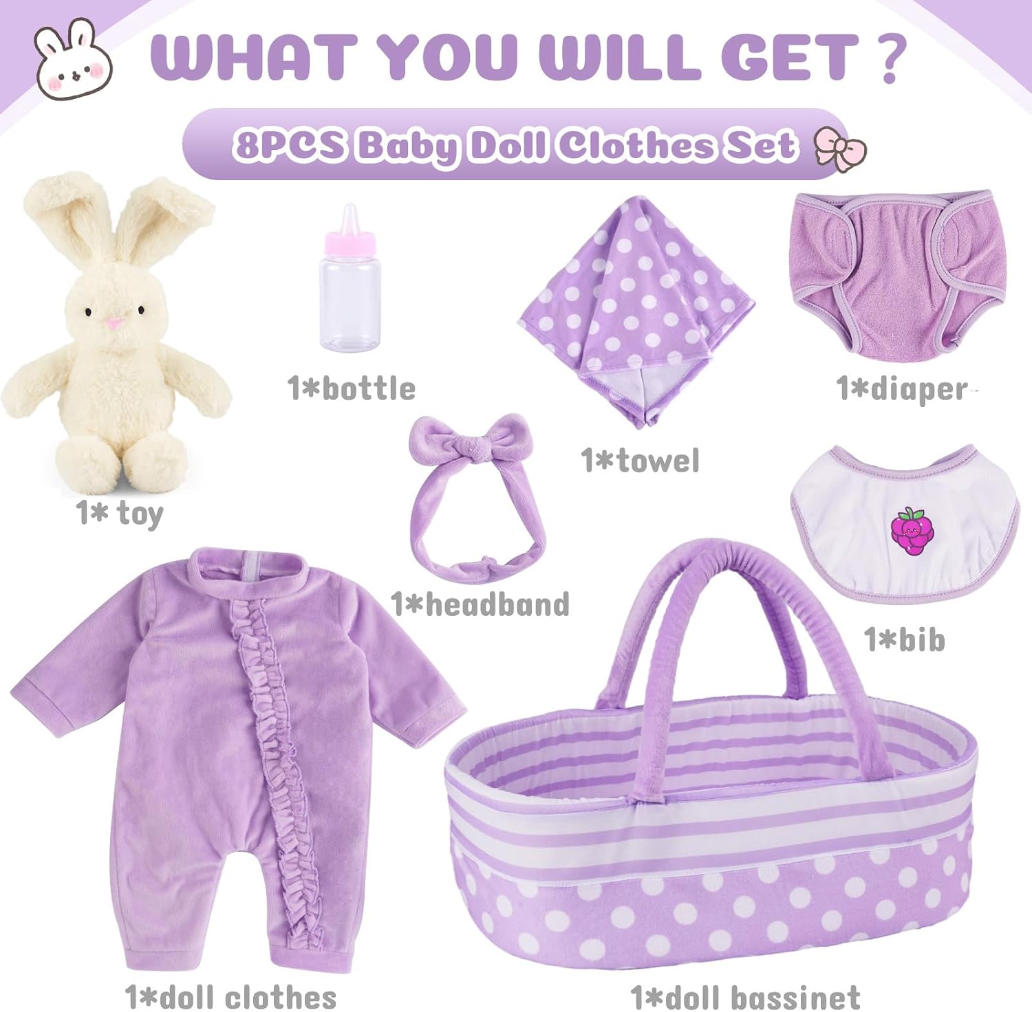 • El paquete incluye: nuestro juego de ropa de 8 muñecas Reborn viene con 1 moisés de muñeca de lunares coloridos, 1 accesorios de moisés, 1 ropa de muñeca colorida, 1 babero de muñeca, 1 juguete, 1 toalla, 1 gorro de bebé y 1 biberón de 8 piezas en total de accesorios para muñecas que mejoran la experiencia de juego para los niños