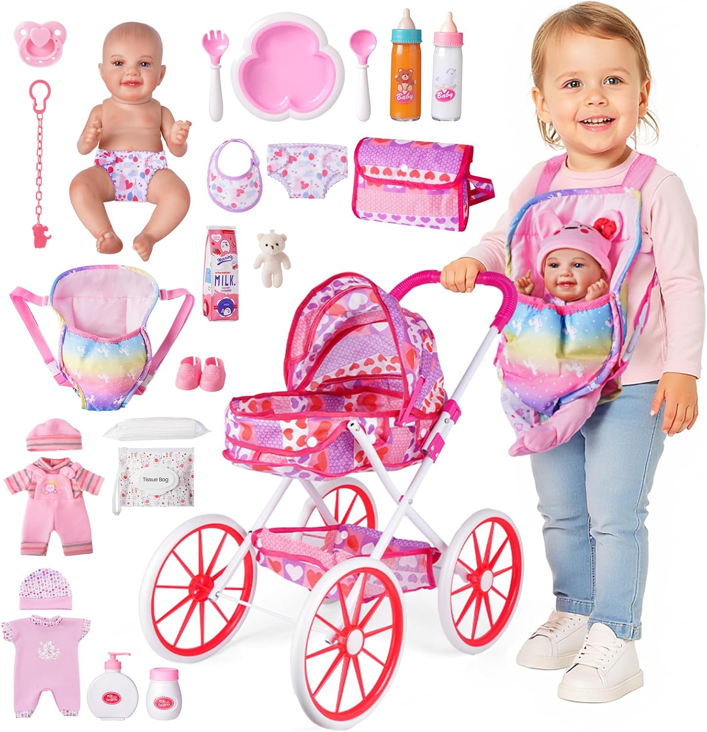 BABESIDE Cochecito de muñeca y accesorios Muñeca de bebé