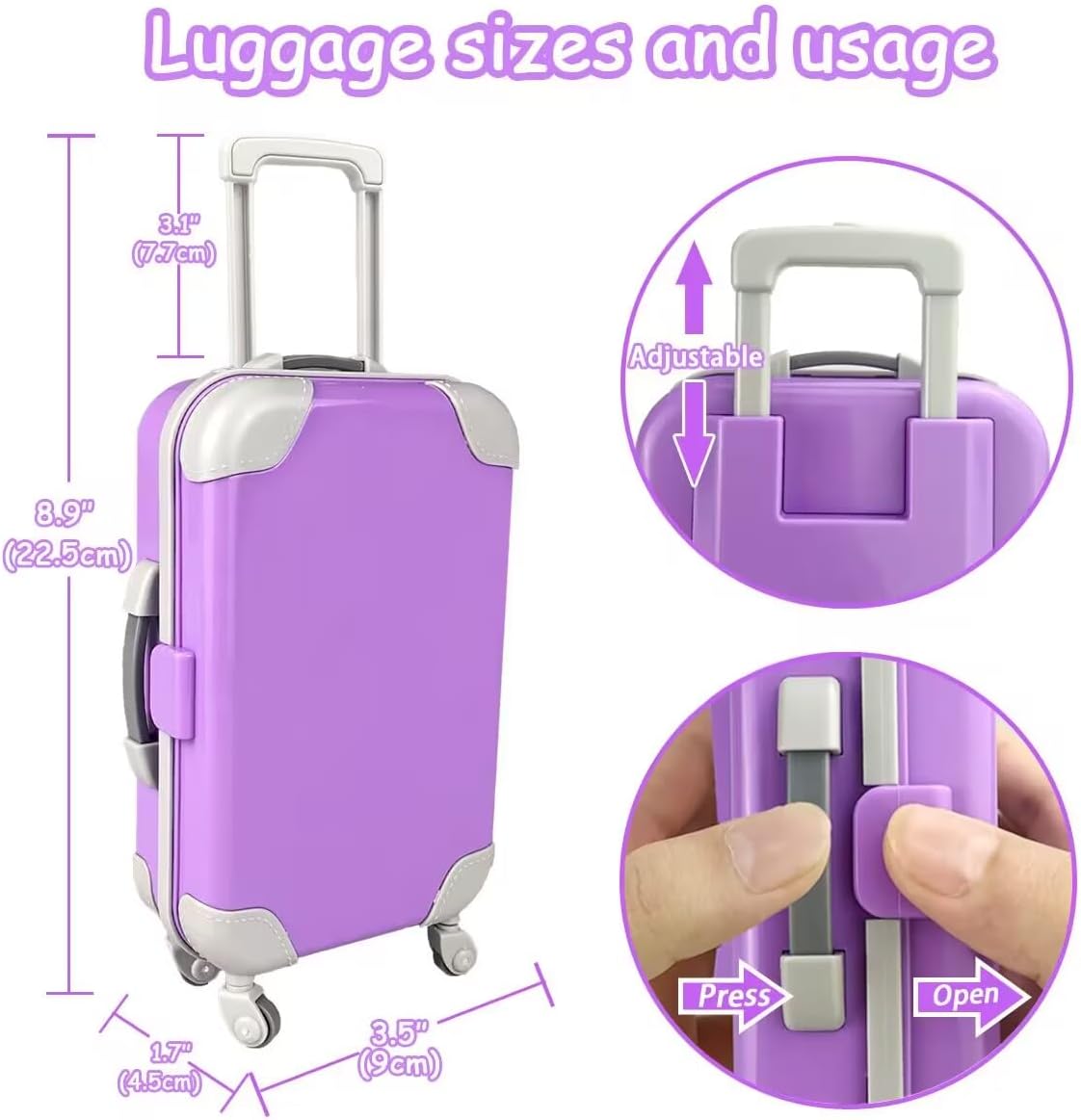 • 17 accesorios de viaje para muñecas: adecuados para muñecas de 18 pulgadas.