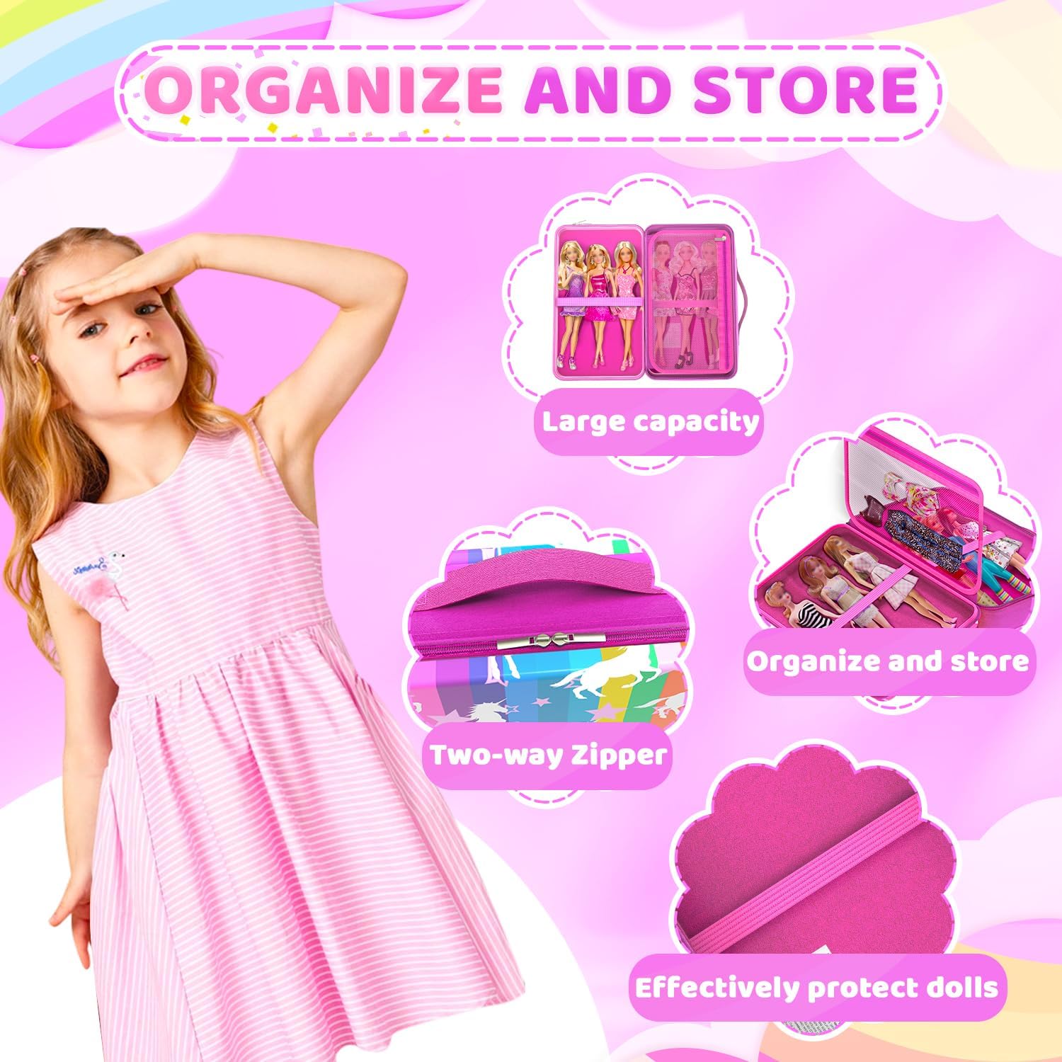 Ideal para mantener las muñecas y accesorios seguros durante el viaje o el almacenamiento.