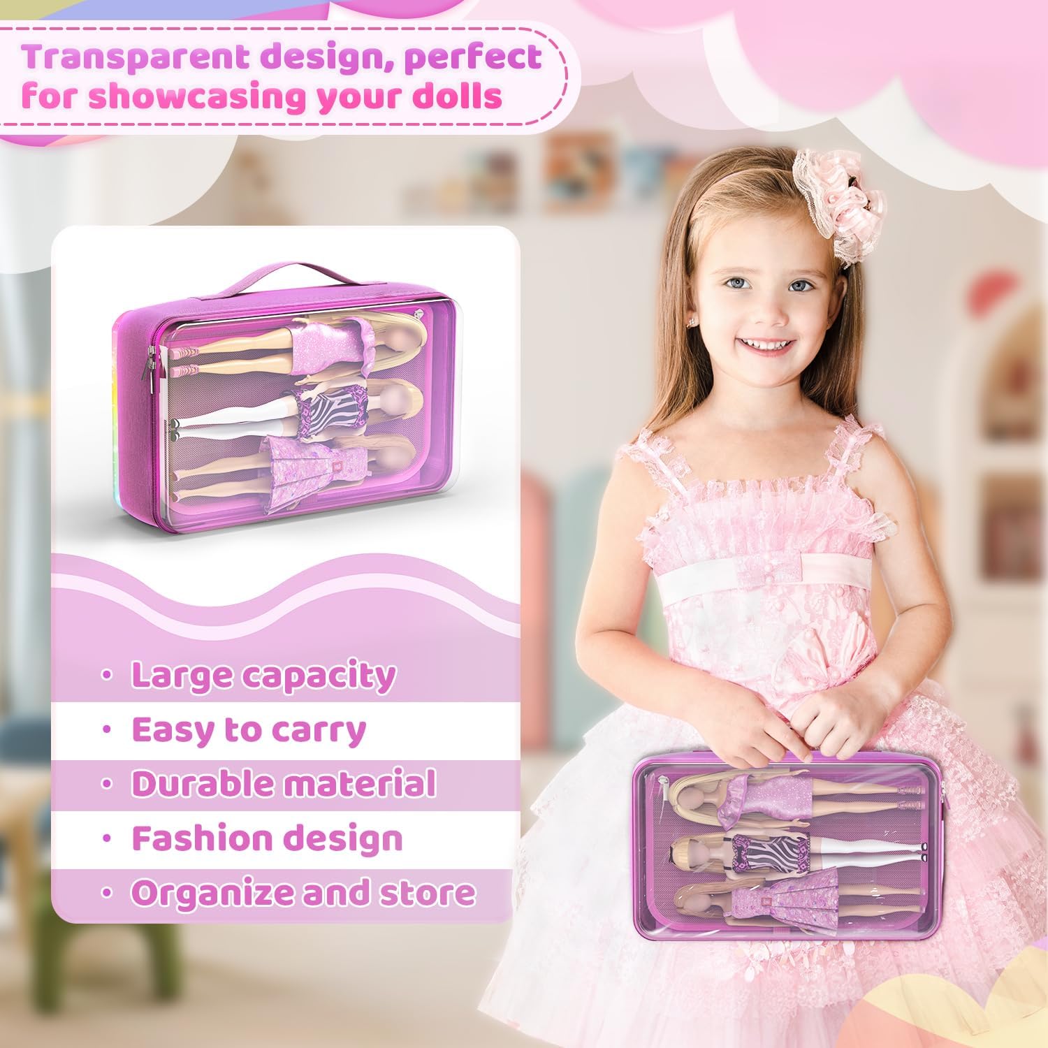 Ideal para mantener las muñecas y accesorios seguros durante el viaje o el almacenamiento.