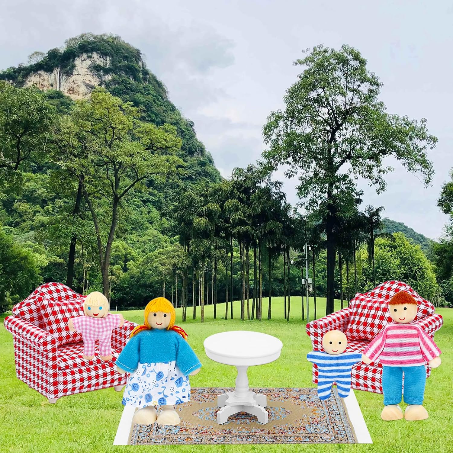 - Material: las muñecas de la familia de juguete están hechas de madera natural y telas de lana de alta calidad, con bordes lisos, protegen a los jugadores de arañazos, adecuadas para que tus pequeños jueguen y coleccionen
