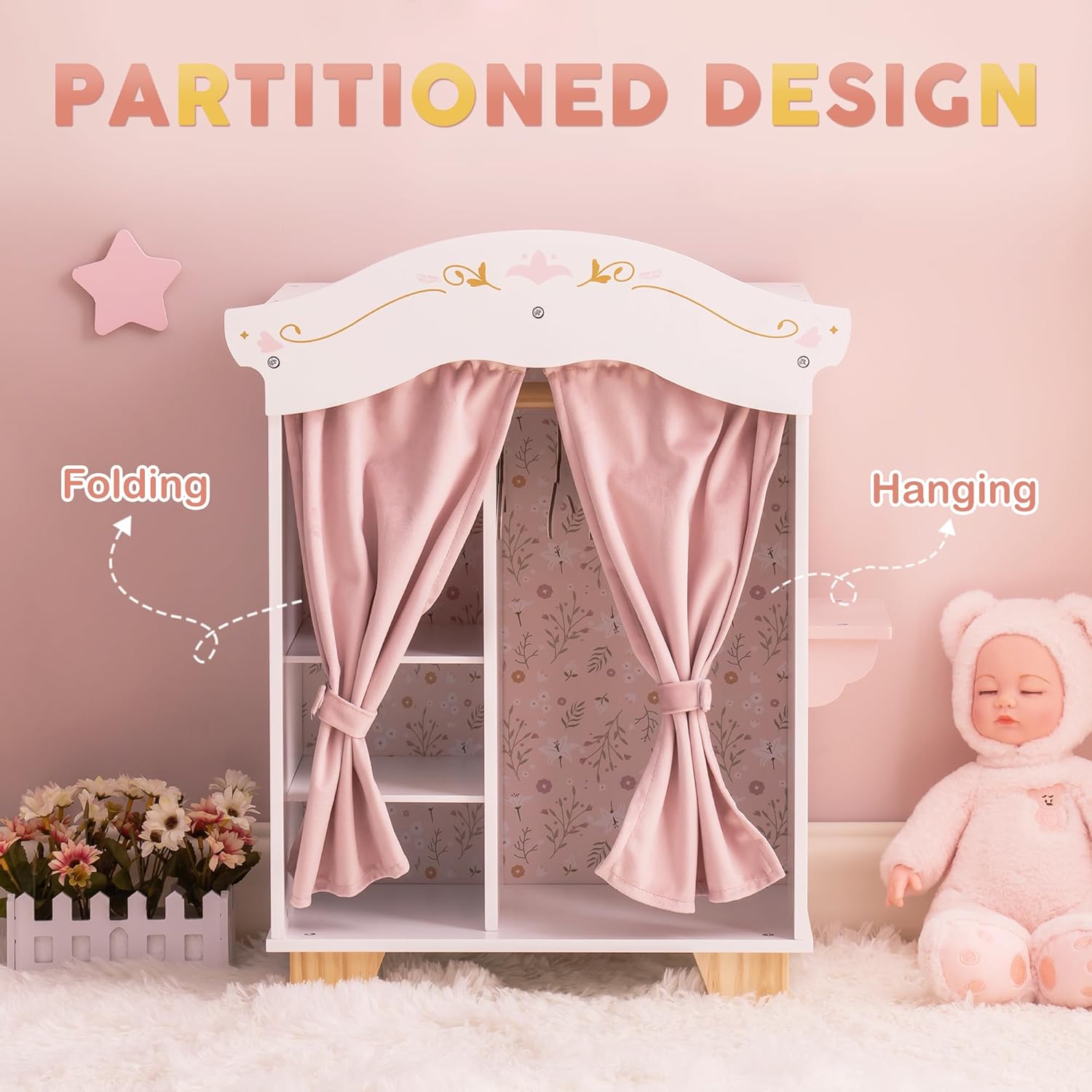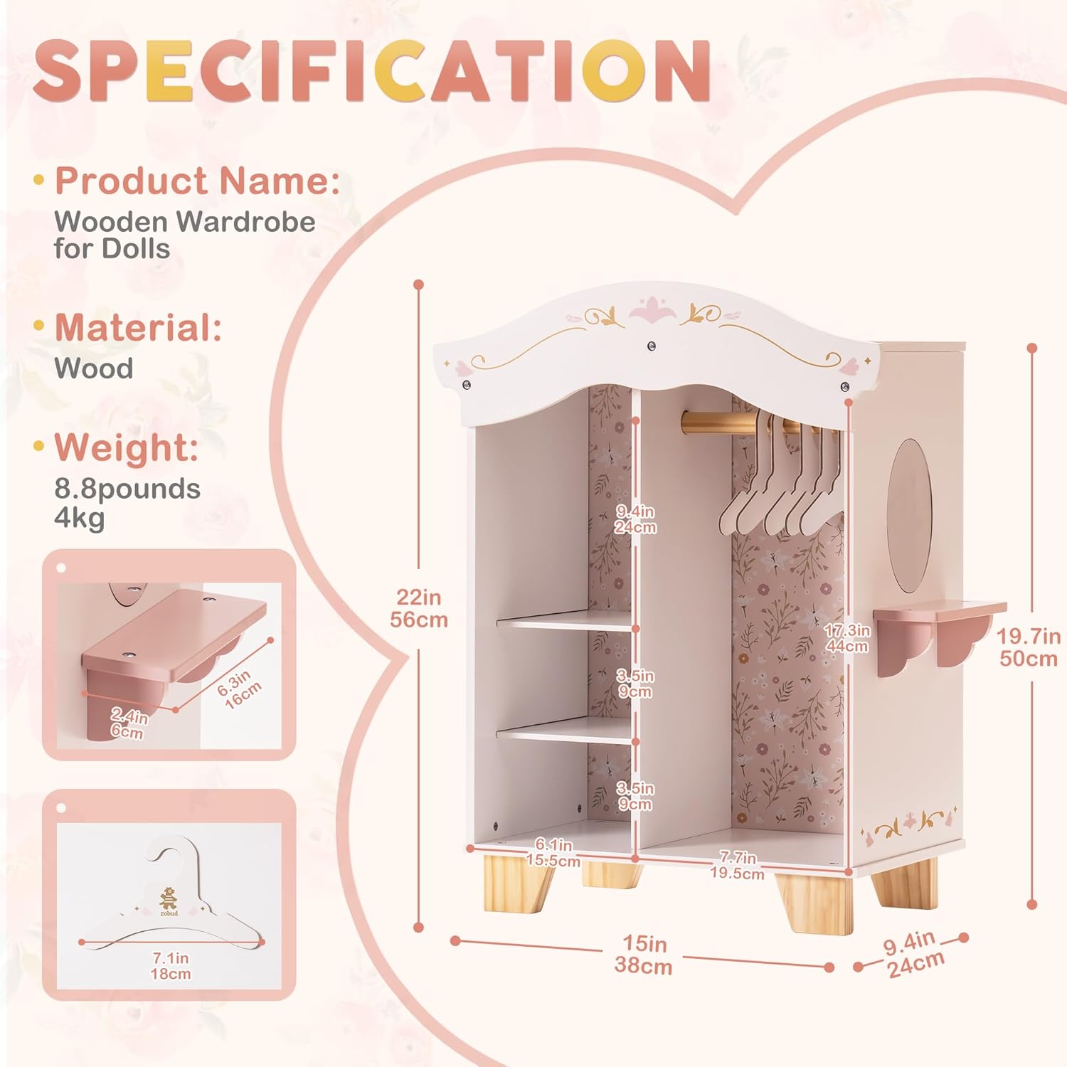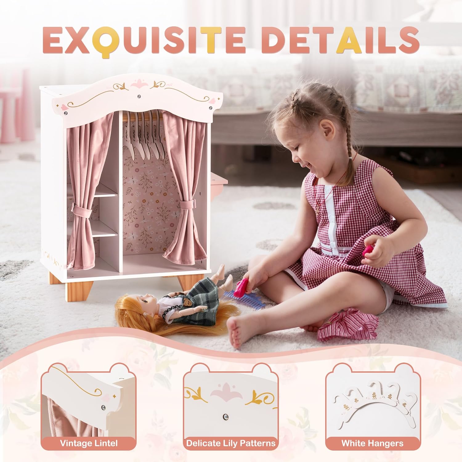 ROBOTIME Armario de muñecas de 18 pulgadas, armario de madera para...