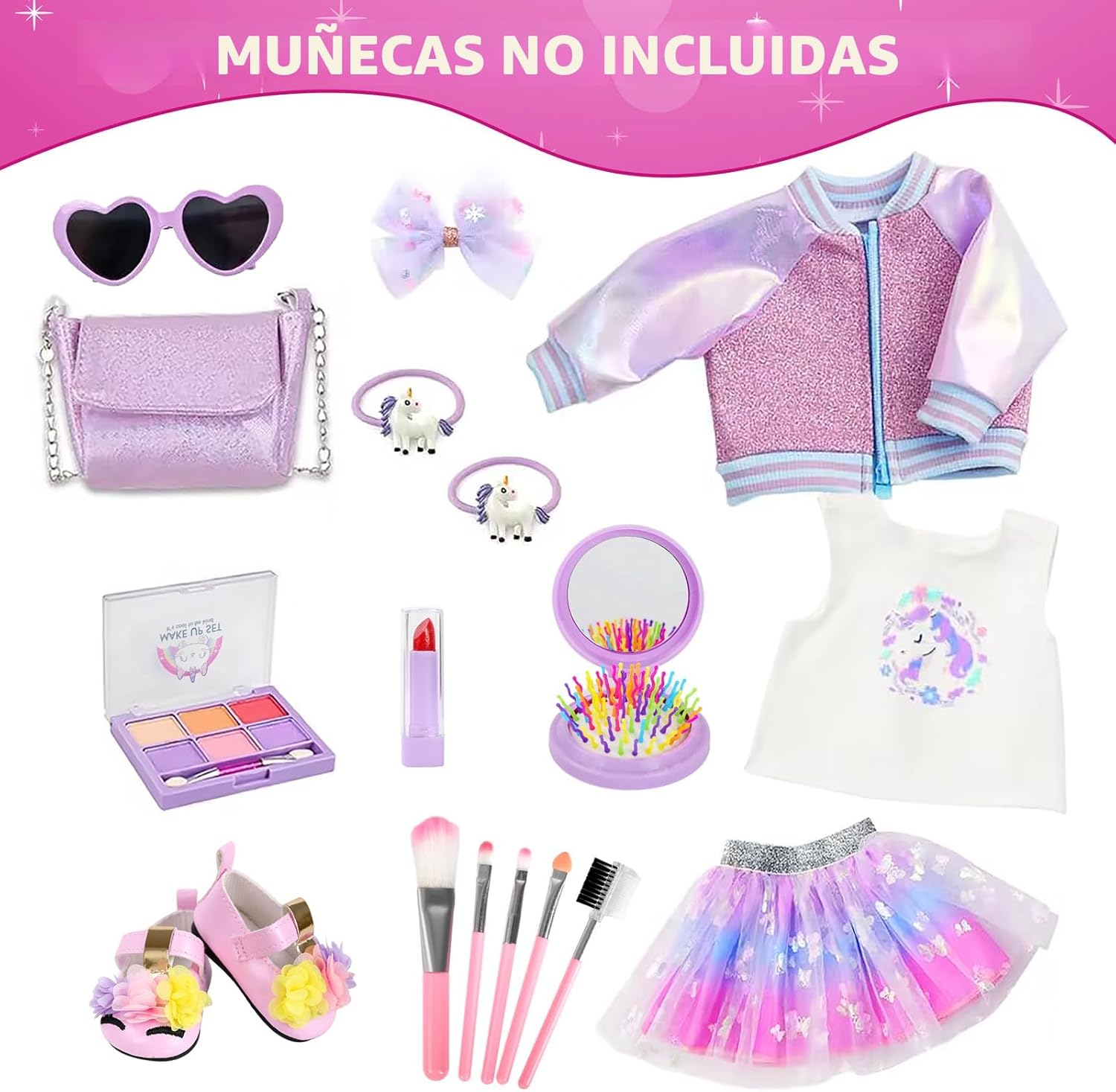 - Regalo perfecto: El set de ropa y accesorios para muñeca es un regalo ideal para una niña encantadora.