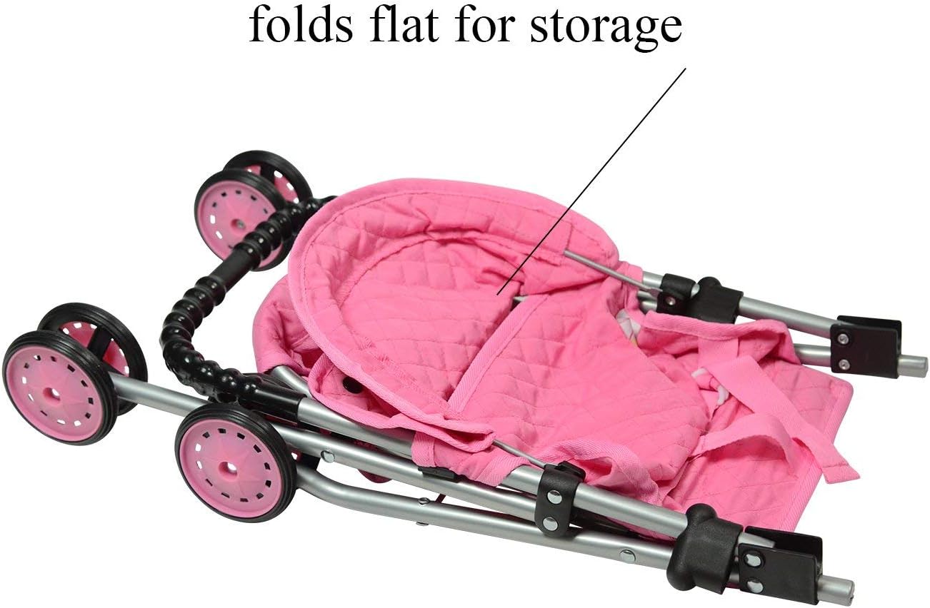 Un regalo único de cumpleaños o regalo de Navidad para niñas pequeñas, el accesorio de cochecito se despliega en un cochecito de bebé realista estilo paraguas para muñecas.