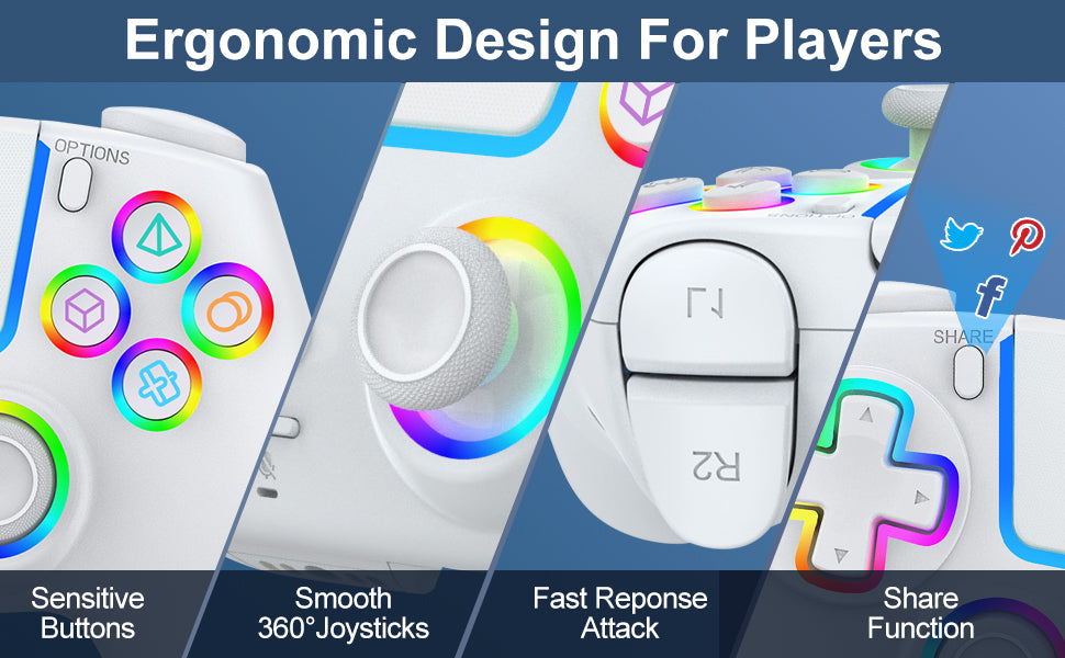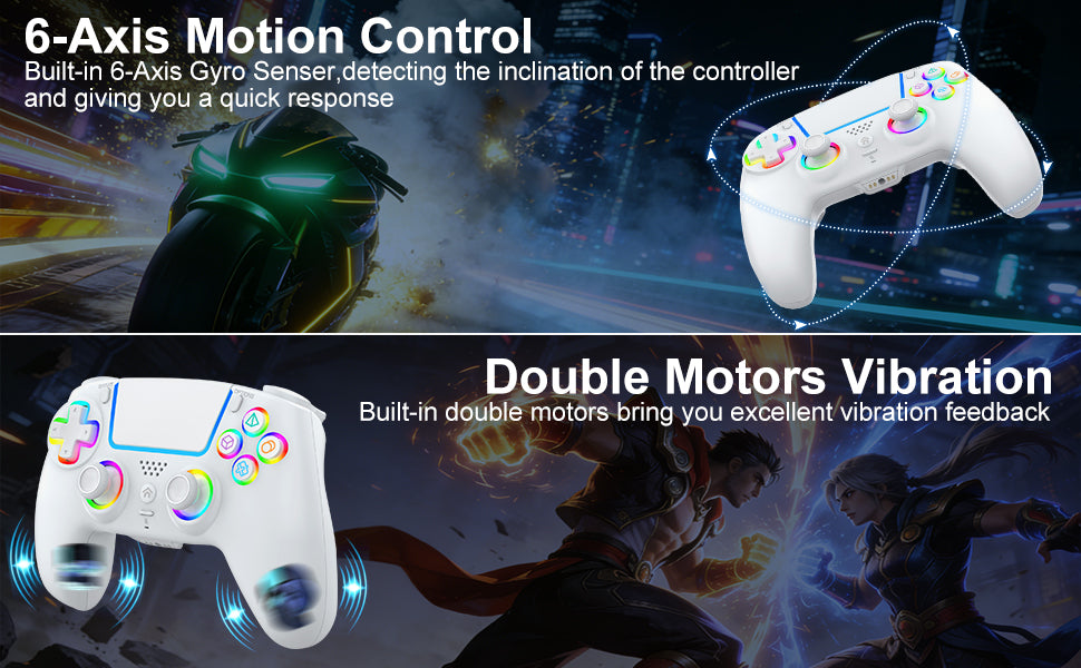 Motores de vibración dual y control de alta precisión: Disfruta de una experiencia de juego más realista y atractiva con motores de vibración dual incorporados que proporcionan una retroalimentación háptica precisa.