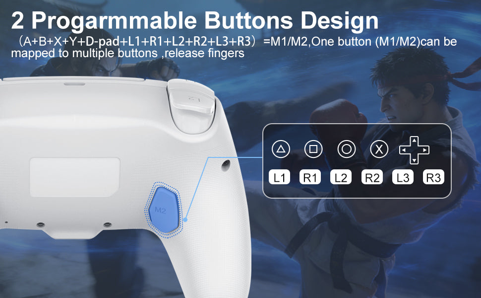 2 botones programables: El mando inalámbrico PS5 cuenta con 2 botones programables adicionales (M1/M2) en la parte posterior.