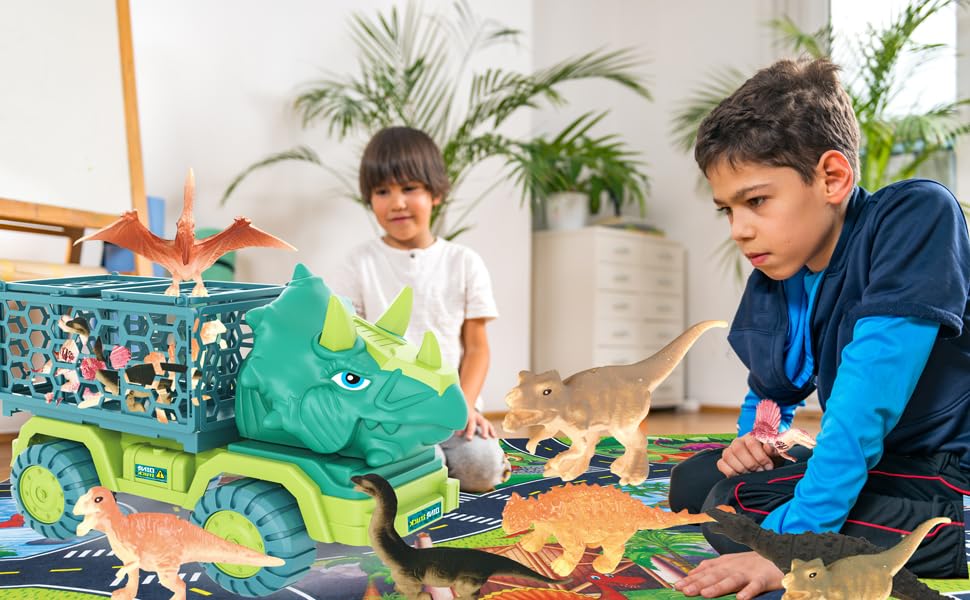 Tapete de juego de dinosaurio multifunción: el juguete transportador de dinosaurios viene con una alfombra de juego de dinosaurios que permite que varios niños jueguen juntos.