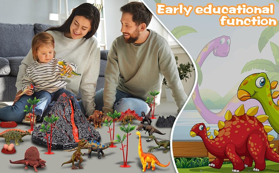 Aventura y exploración: los niños pueden pasar un tiempo feliz con el gran volcán y muchas criaturas prehistóricas.