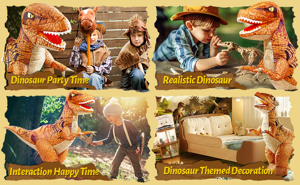 Juguete inflable de dinosaurio: el dinosaurio inflable de aproximadamente 39 pulgadas de alto se inflará completamente en 20 segundos.