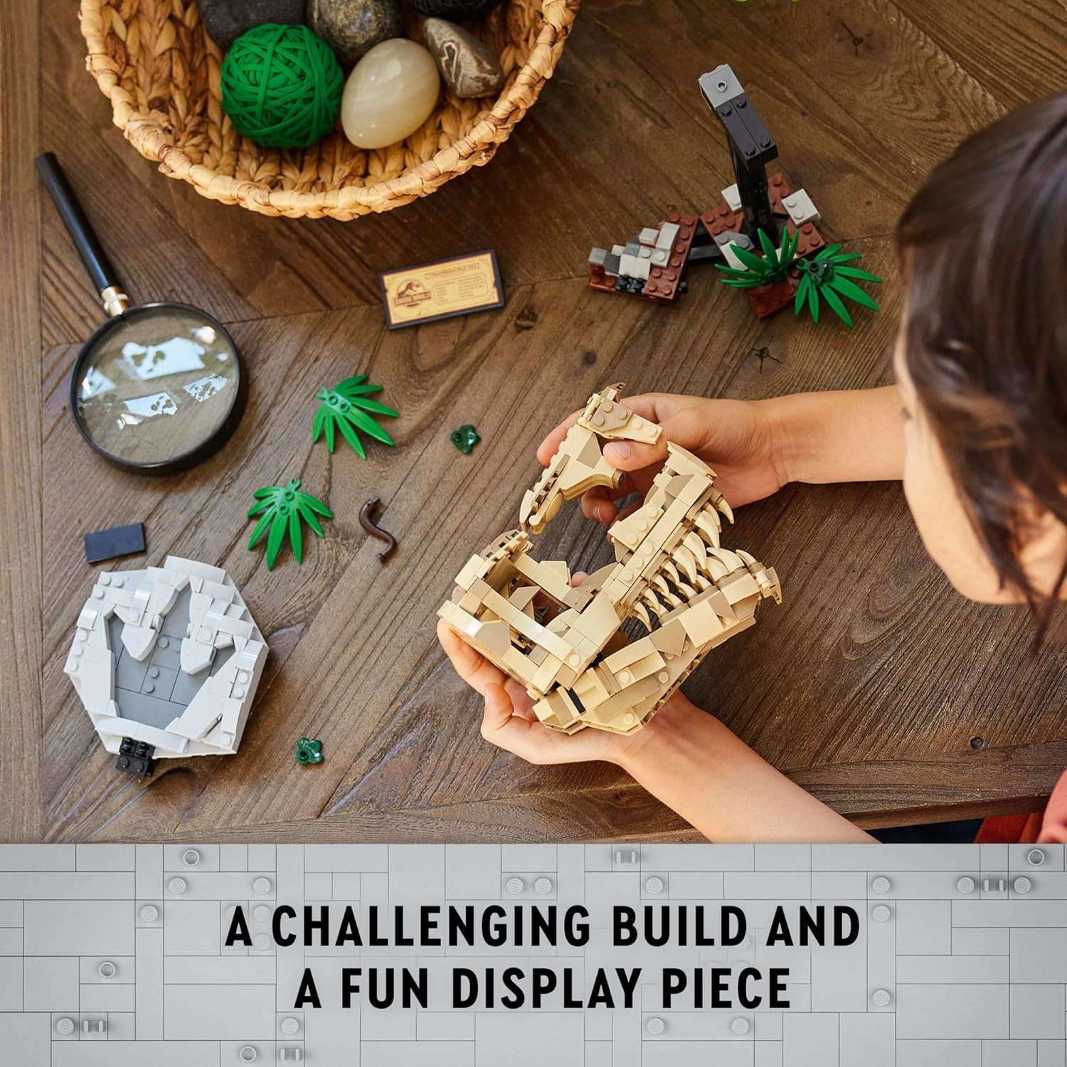 LEGO Fósiles de dinosaurios Jurassic World: calavera T. rex, juguete de dinosaurio para niños y niñas, juego educativo de modelo de esqueleto con huesos para niños, gran regalo para los fanáticos de