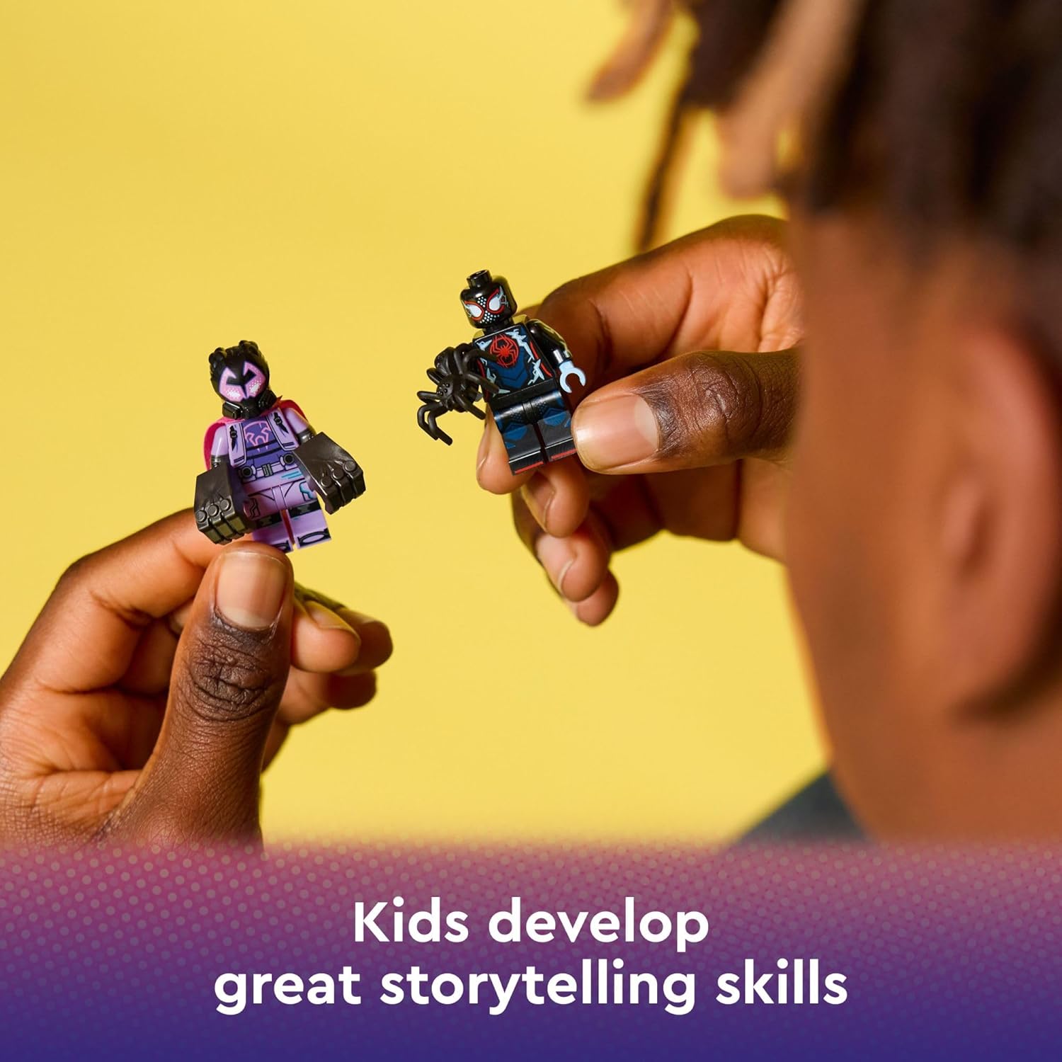 - Conecta el multiverso: las minifiguras se pueden mostrar, combinar con otros juegos de Spider-Man de LEGO o añadir a colecciones existentes para ampliar las posibilidades de juego