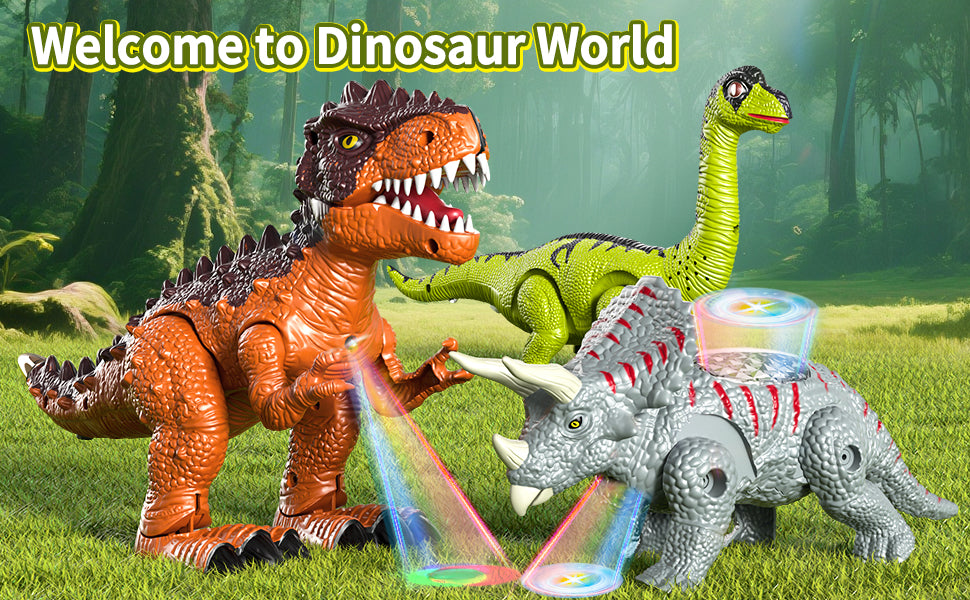Juguete maravilloso y divertido: cada dinosaurio puede caminar, rugir y tiene luces intermitentes.