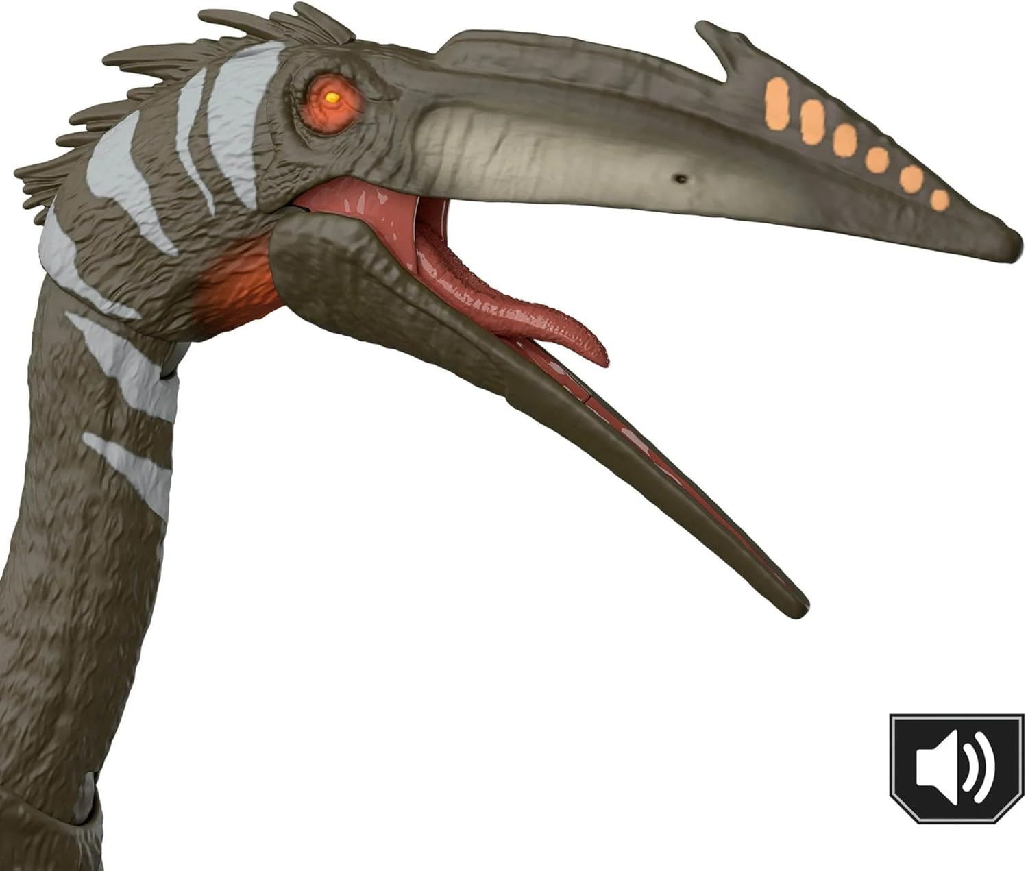 ¡Las alas de tela de este Quetzalcoatlus se abren a una espectacular envergadura de 25 pulgadas cuando presionas el botón de la parte posterior! Muévelo por el aire y observa el movimiento realista de aleteo..