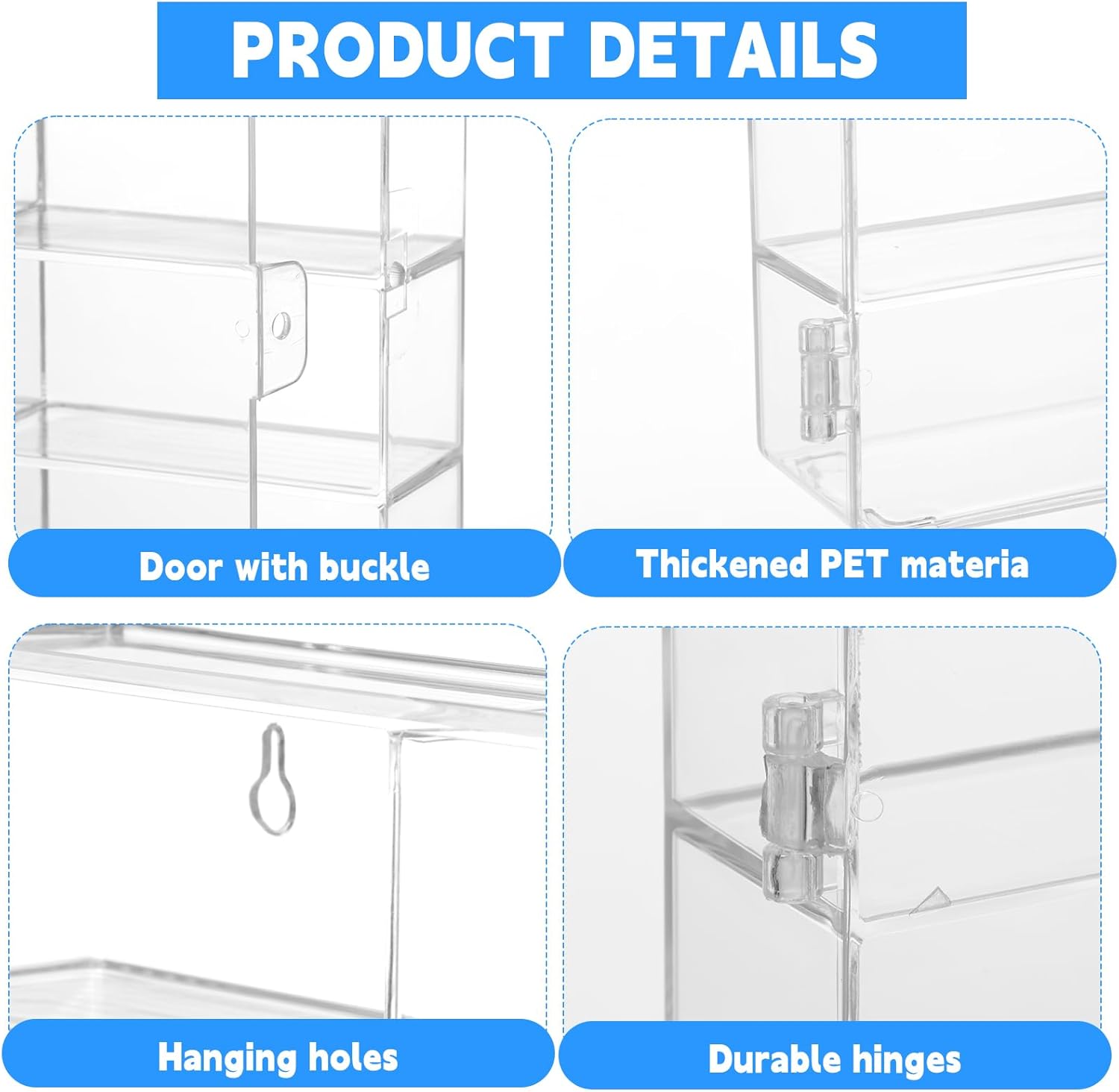 Especificaciones: Material: acrílico Color: Claro Tamaño: cada uno aproximadamente 7.5 x 6.7 x 1.6 pulgadas El paquete incluye: 6 vitrinas para coches.