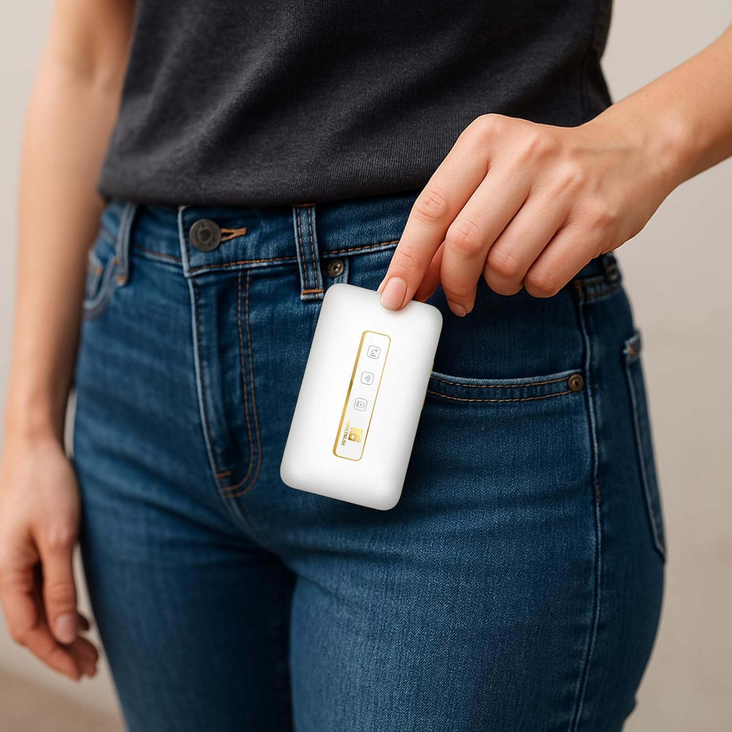 Su diseño ultracompacto hace que este hotspot portátil sea fácil de llevar en bolsillos o bolsos, perfecto para usar sobre la marcha.
