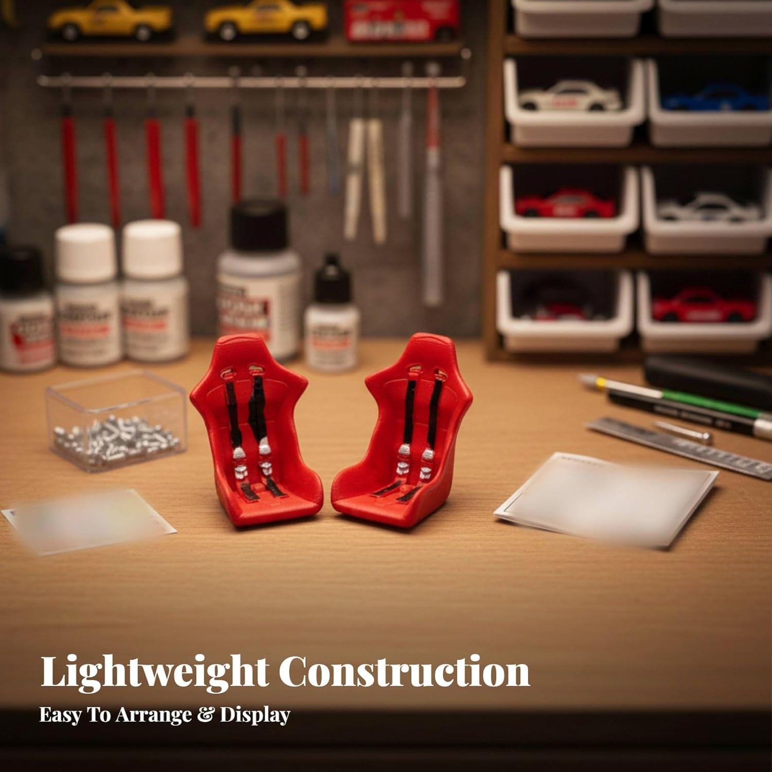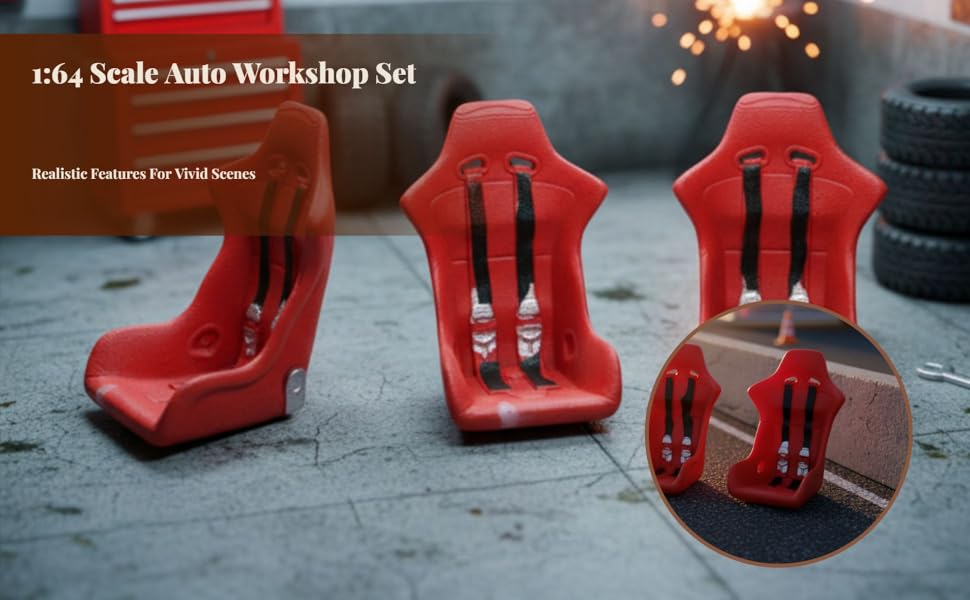 【Escala】: Diseñado en una escala 1:64, cada asiento mide 2cmx3cmx2.3cm/0.79inchx1.18inchx0.91inch para una construcción precisa de la escena