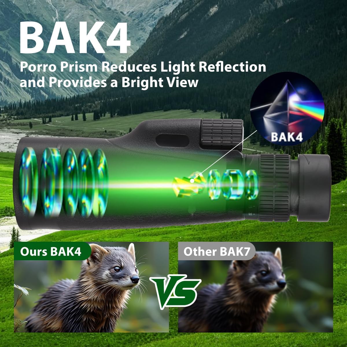 Aumento alto ajustable: Este monocular tiene un zoom de aumento ajustable y potente, lo que facilita la captura de más detalles, ver más lejos y con mayor claridad; es perfecto para la observación de aves, la caza, etc