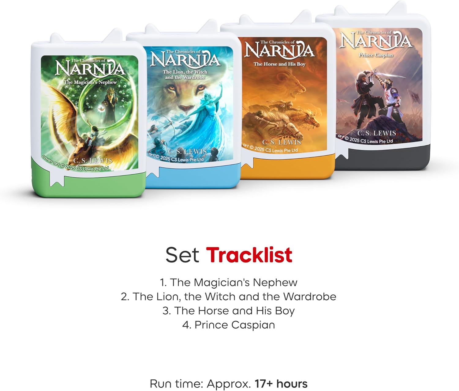 Este set de audiolibros Tonie incluye 4 libros de capítulos sin abreviar de Las Crónicas de Narnia.