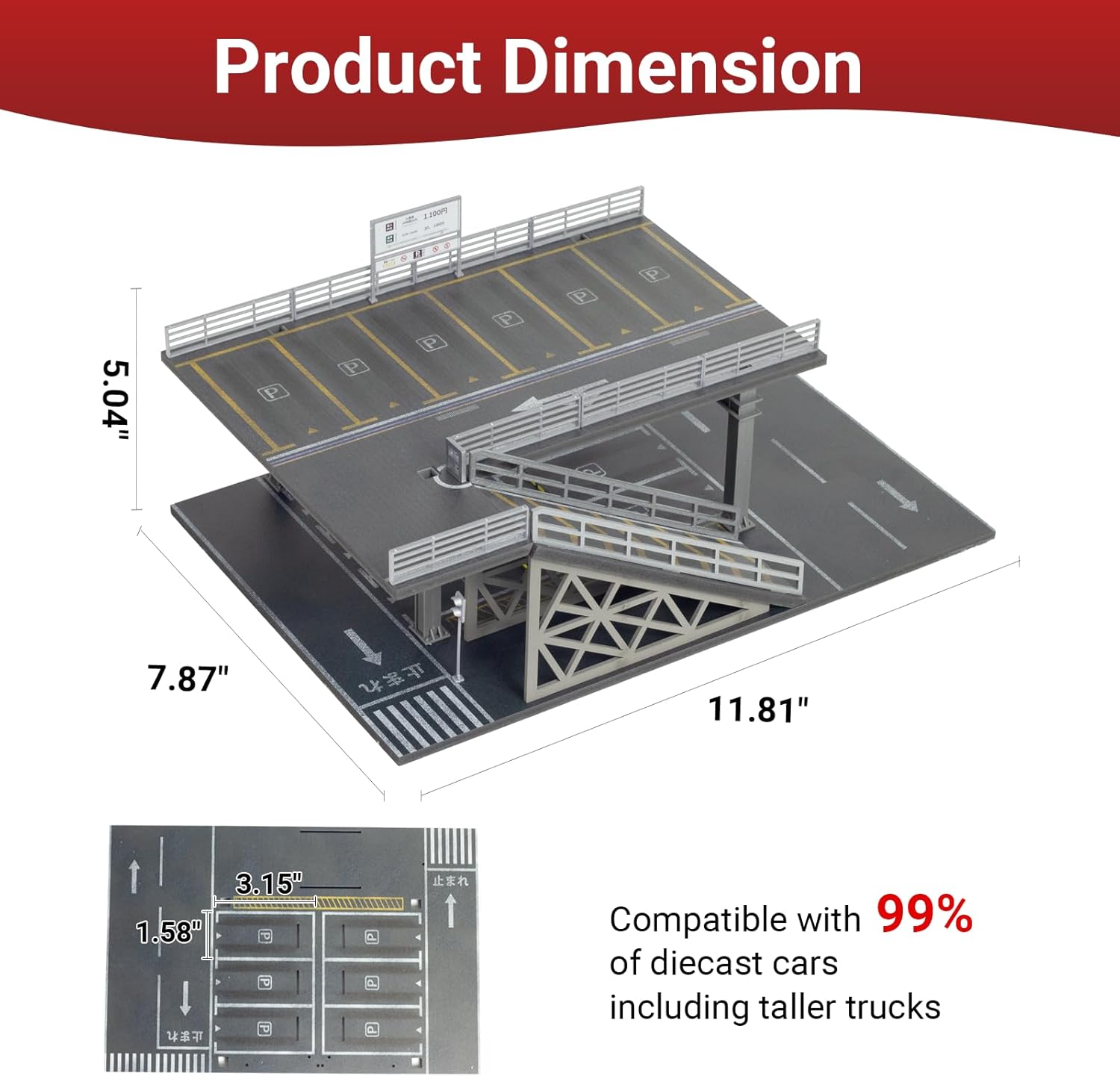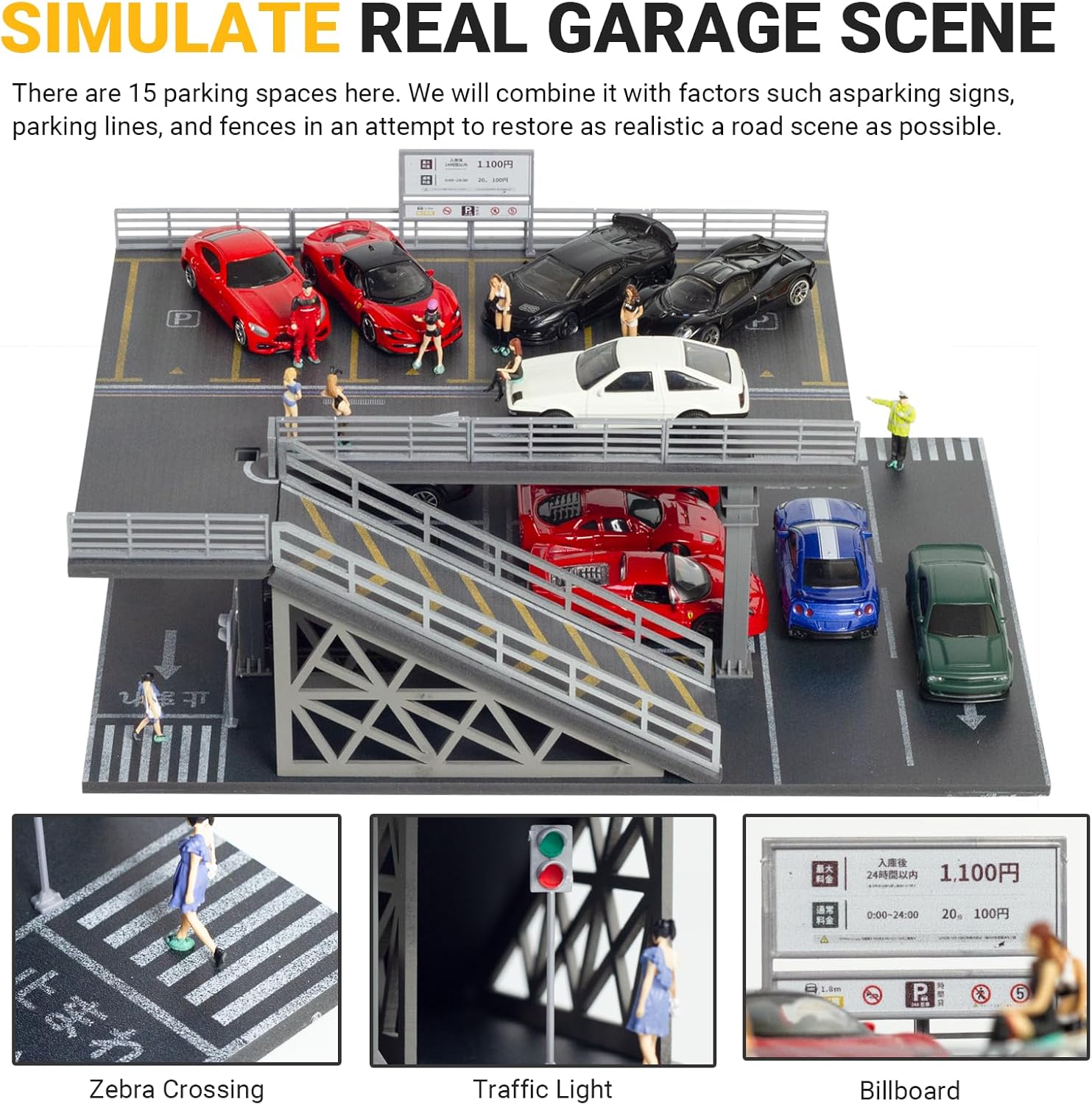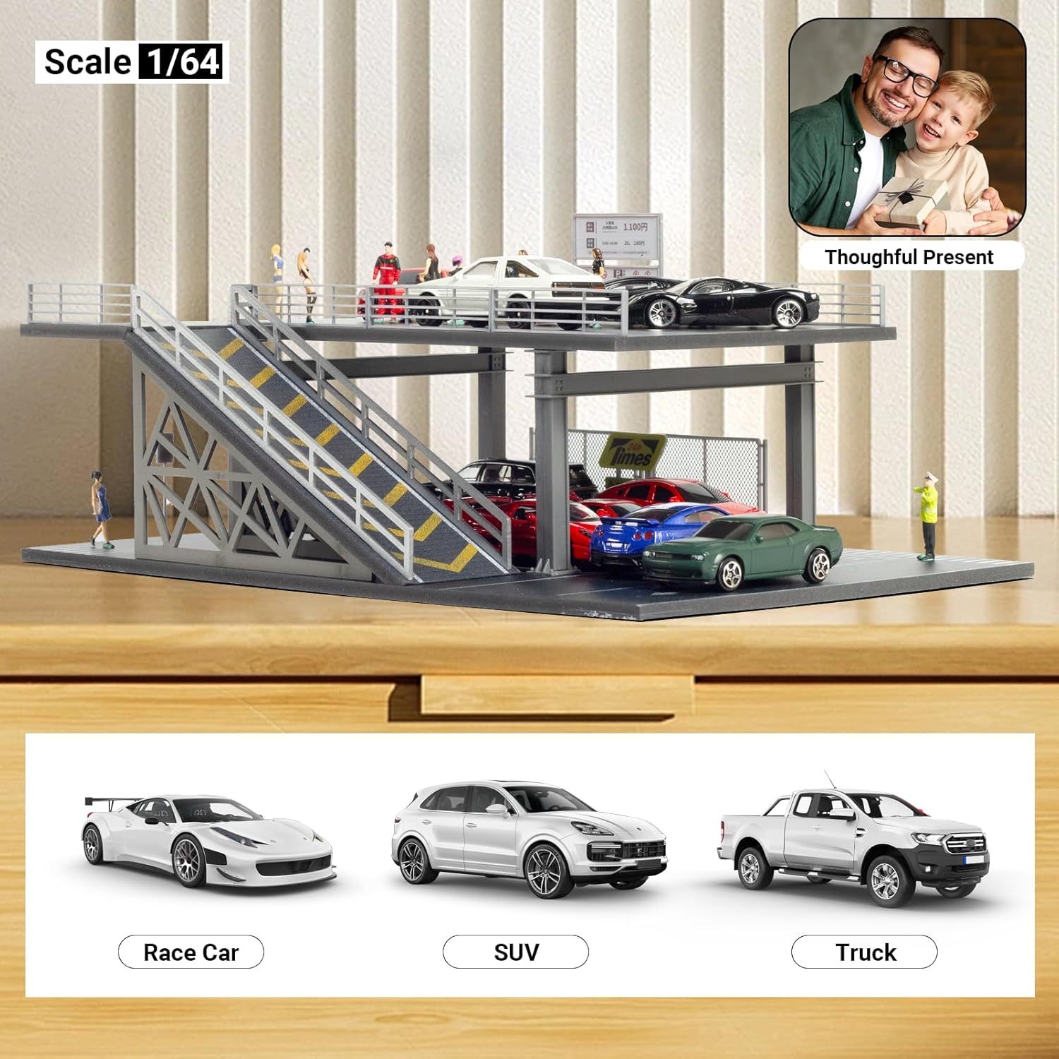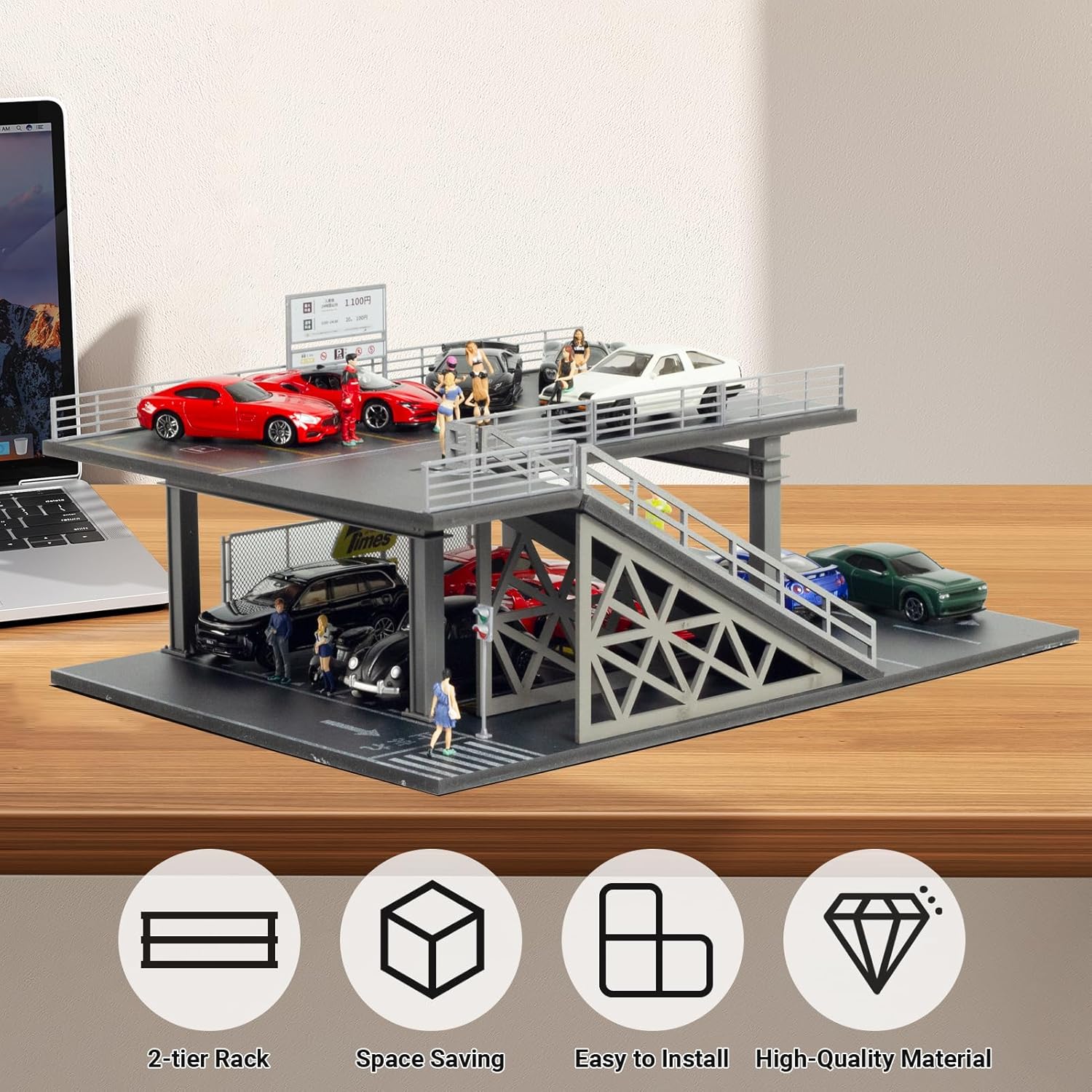 Vitrina de autos a escala 1/64 de 2 capas para exhibición y almacenamiento de autos modelos, garaje compatible con Hot Wheels y Matchbox, dioramas de estacionamiento, 12 espacios de estacionamiento (tipo F).